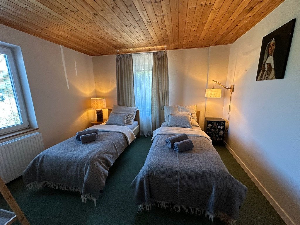 Je zajištěno ve dvoulůžkovách pokojích s vlastní koupelnou, některé pokoje jsou možné i jako 3lůžkové. Celý hotel je posazen v nádherné malebné přírodě, s vlastním stádem jelenů a laní. Pro hosty k dispozici sauna, koupací jezírko s plaveckou dráhou 25 m, multifunkční tenisový kurt, letní terasa s posezením a možností ohně. Studenec se nachází v srdci šumavské přírody, nedaleko Českého Krumlova a v těsné blízkosti malebného městečka Rožmberk nad Vltavou, kam se můžete vypravit krásnou procházkou pěšky po křížové stezce. K hotelu přiléhá zahrada kaple Panny Marie Bolestné, kde je možné meditovat či praktikovat jógu. Kaple je součástí křížové cesty a vyvěrá zde léčivý pramen. Parkování aut přímo u objektu. Nově i možnost dobití elektroautomobilů. Sauna 2 h 800 Kč za celou saunu, kapacita 8 osob. Každá další hodina 300 Kč. Na místě k dispozici i wi-fi.